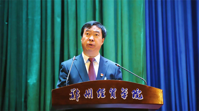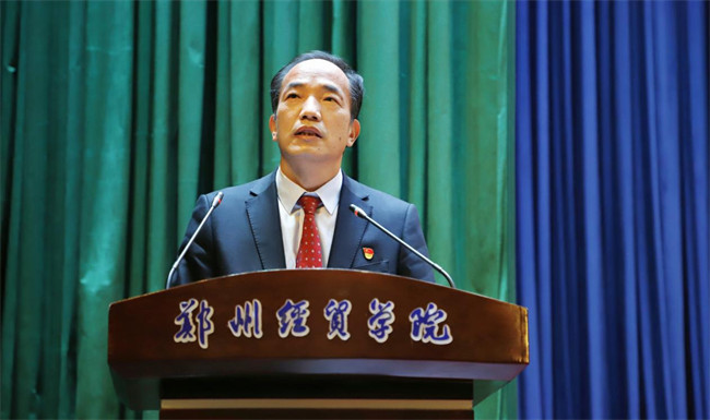 黨委書記趙榴明代表中國共產(chǎn)黨鄭州經(jīng)貿(mào)學(xué)院委員會向大會作報告