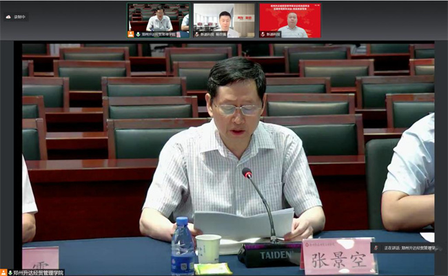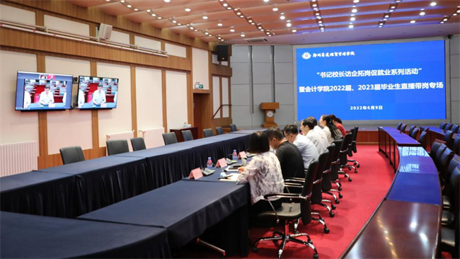 此次云走訪活動(dòng)邀請(qǐng)到新道人才網(wǎng)、用友網(wǎng)絡(luò)科技股份有限公司河南分公司、新道科技股份有限公司河南分公司、鄭州星捷電子科技有限公司、河南金雨達(dá)科技有限公司五家企業(yè)參會(huì)。校黨委書記雷霆,會(huì)計(jì)學(xué)院黨委書記張蕾、院長張景空,副院長張新成、畢鵬翾,行政秘書陳剛、劉錦,就業(yè)專員魯玲玉在國際會(huì)議廳參加本次云走訪活動(dòng),會(huì)計(jì)學(xué)院2022屆、2023屆畢業(yè)生及輔導(dǎo)員通過線上方式參加會(huì)議。會(huì)議由張蕾主持。