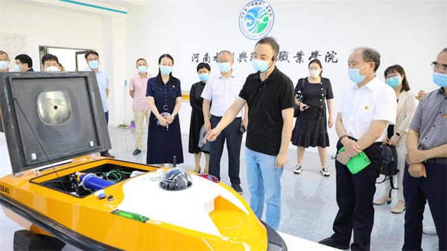 中新河南網(wǎng)6月15日電 6月14日上午,省水利廳到河南水利與環(huán)境職業(yè)學(xué)院航空港校區(qū)開展2022年全國科技活動周活動,實地察看了學(xué)校新校區(qū)建設(shè),觀摩了專業(yè)實訓(xùn)教學(xué)中水利科技應(yīng)用情況。省水利廳科技與對外合作處處長王彥哲、一級調(diào)研員陳麗、副處長鄭光大,信息中心主任張明貴,移民安置處副處長胡廣超等機關(guān)處室干部職工20余人參加活動。
