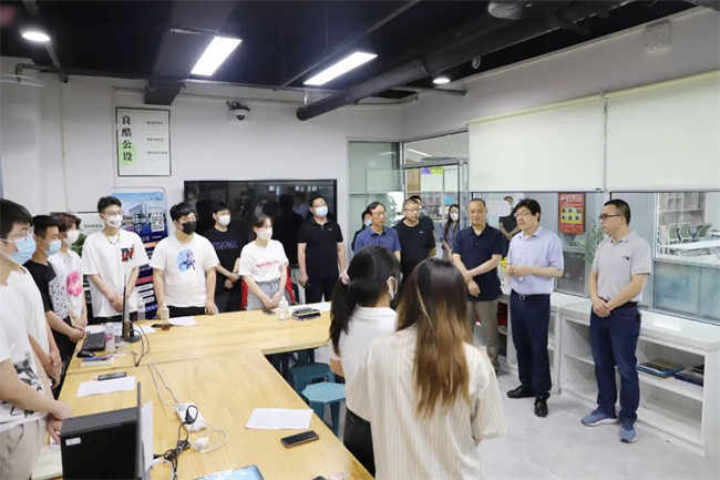 看到學生在企業(yè)真實項目創(chuàng)新創(chuàng)業(yè),鄭邦山對學校產教融合、校企合作的特色做法和線場模式改革取得成效表示贊賞,并勉勵師生珍惜機會、用好平臺、大膽創(chuàng)新、實現夢想,早日成長成才。