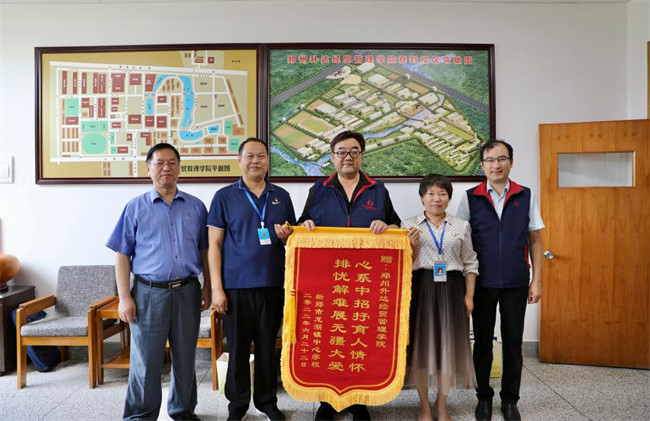 王俊艷代表龍湖鎮(zhèn)廣大參加中招的師生向?qū)W校在2022年中招工作中給予的大力支持表示感謝,向?qū)W校贈送了“心系中招抒育人情懷 排憂解難展無疆大愛”的錦旗,稱贊學(xué)校敢于擔(dān)當(dāng)、無私奉獻。