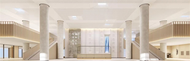 王新奇結(jié)合對國內(nèi)外先進(jìn)圖書館調(diào)研考察的經(jīng)驗(yàn)、升達(dá)發(fā)展的歷程、未來使用的需求,提出大廳的設(shè)計(jì)創(chuàng)意,讓文獻(xiàn)和環(huán)境相映生輝,把圖書館的厚重歷史感和先進(jìn)科技相融合。他對圓柱造型、Logo燈光、材料質(zhì)量也都提出了明確要求。
