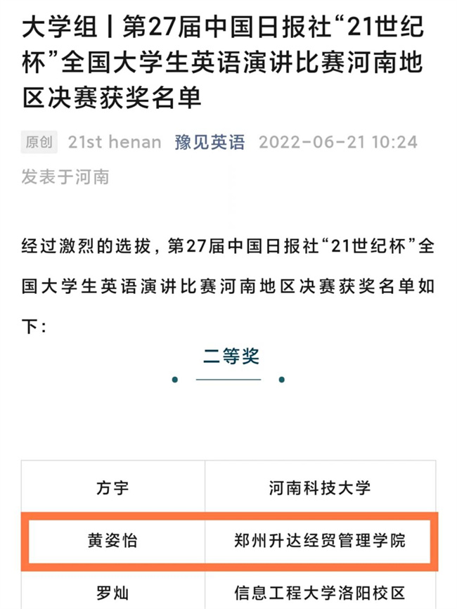 近年來,在鄭州升達(dá)經(jīng)貿(mào)管理學(xué)院學(xué)校領(lǐng)導(dǎo)的大力支持下,外國語學(xué)院通過“以賽促學(xué)、以賽促練”,開展英語演講比賽、英語翻譯大賽等活動,不斷增強(qiáng)學(xué)生專業(yè)能力,同時為學(xué)院專業(yè)建設(shè)不斷提供借鑒和參考,為翻譯專業(yè)的發(fā)展不斷夯實基礎(chǔ)。