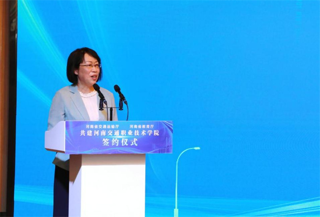 宋爭輝在致辭中強調(diào),兩廳共建河南交院是貫徹省委省政府對事業(yè)單位重塑性改革的戰(zhàn)略部署,是推動職業(yè)教育、強化行業(yè)指導地位、突出特色優(yōu)勢的重要舉措。他指出,省交通運輸廳站位大局,貫徹省委省政府決策部署態(tài)度堅決,在省直30所院校管理體制調(diào)整中,提前謀劃、行動迅速,率先完成共建協(xié)議,為其他涉改院校樹立了標桿、提供了經(jīng)驗。河南交通職業(yè)學院辦學歷史悠久,在人才培養(yǎng)上凸顯了“專”“精”“特”優(yōu)勢;要緊抓此次重塑型改革、結(jié)構(gòu)性優(yōu)化和功能性再造的契機,系統(tǒng)謀劃,進一步聚焦交通運輸行業(yè)的發(fā)展,進一步凝聚特色,凸顯優(yōu)勢,集中力量建設(shè)交通特色更加鮮明、品牌更加響亮的職業(yè)院校,推進人人持證、技能河南建設(shè),為實現(xiàn)“兩個確保”,為推動全省職業(yè)教育創(chuàng)新發(fā)展作出新的更大的貢獻。他表示,省教育廳將積極落實共建協(xié)議,量身制定學校長遠發(fā)展的計劃方案,為學校發(fā)展創(chuàng)造更好的條件和環(huán)境;他希望省交通運輸廳一如既往關(guān)心和支持學校的建設(shè)和發(fā)展,助力學校發(fā)展再上新臺階。