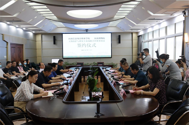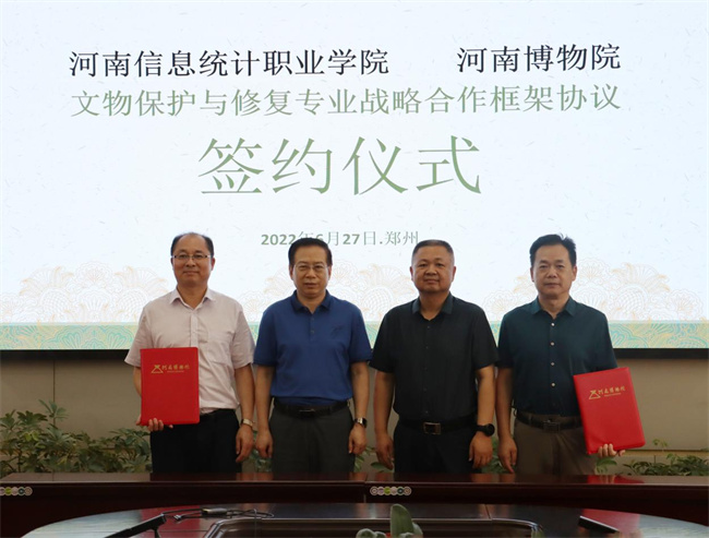 河南信息統(tǒng)計職業(yè)學院文化旅游系和河南博物院文物保護研究中心相關(guān)工作人員參加儀式。