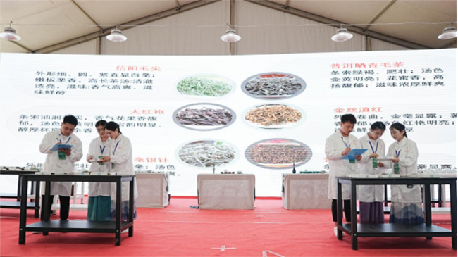 6月26日,鄭州升達(dá)經(jīng)貿(mào)管理學(xué)院培訓(xùn)中心副主任兼本相茶文化學(xué)院副院長(zhǎng)劉昊和本相茶文化學(xué)院副院長(zhǎng)梁書山率6名選手參加評(píng)茶員表演項(xiàng)目。為高水平展現(xiàn)評(píng)茶員工種的技能水平,本次評(píng)茶表演賽共設(shè)置四個(gè)環(huán)節(jié)——分別為辨外形識(shí)茶、品鑒茶湯等級(jí)、茶湯對(duì)茶樣、斗沏泡茶。選手按照規(guī)范的競(jìng)賽要求進(jìn)行操作,體現(xiàn)了各位選手評(píng)茶技能水平,同時(shí)也通過(guò)表演賽向大家展示審評(píng)的科學(xué)性、專業(yè)性、趣味性,讓更多的人了解茶葉審評(píng)。
