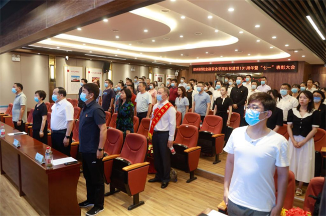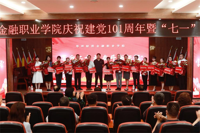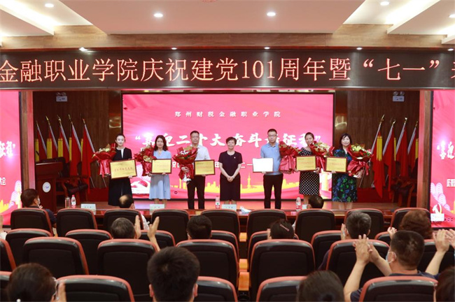 大會(huì)開始,全場(chǎng)起立,奏唱國(guó)歌,催人奮進(jìn)。一年來(lái),學(xué)校深入學(xué)習(xí)貫徹黨的十九屆六中全會(huì)精神,堅(jiān)持黨對(duì)學(xué)院工作的全面領(lǐng)導(dǎo),充分發(fā)揮基層黨組織戰(zhàn)斗堡壘作用和黨員先鋒模范作用,涌現(xiàn)出了一大批優(yōu)秀個(gè)人和先進(jìn)集體。會(huì)上,院領(lǐng)導(dǎo)分別為獲得鄭州市教育局及學(xué)院“優(yōu)秀共產(chǎn)黨員”和“優(yōu)秀黨務(wù)工作者”、學(xué)院“黨務(wù)技能標(biāo)兵”、學(xué)院首屆微黨課制作大賽“優(yōu)秀組織獎(jiǎng)”、省級(jí)和校級(jí)“樣板黨支部”等先進(jìn)集體和個(gè)人頒發(fā)了獎(jiǎng)牌。
