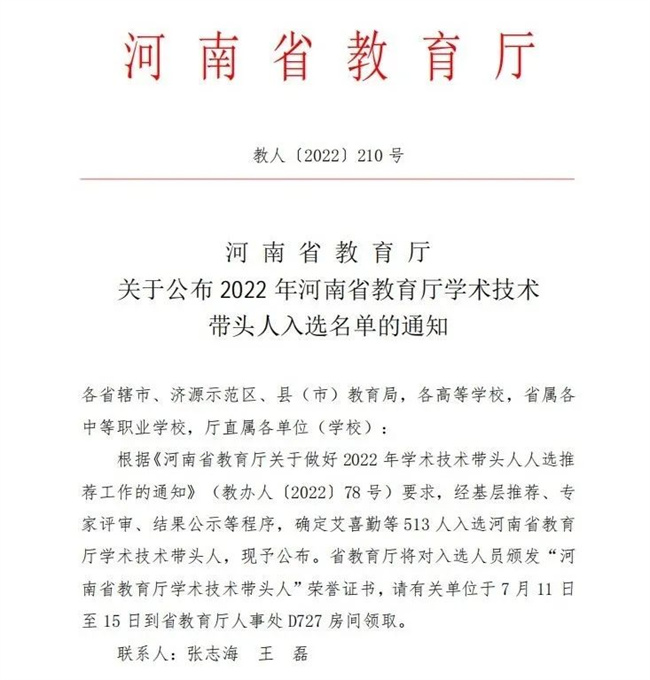 中新河南網(wǎng)7月5日電 近日,河南省教育廳發(fā)布了《關(guān)于公布2022年河南省教育廳學(xué)術(shù)技術(shù)帶頭人入選名單的通知》(教人〔2022〕210號(hào)),鄭州工程技術(shù)學(xué)院外國(guó)語(yǔ)學(xué)院(國(guó)際教育學(xué)院)王麗麗老師和信息工程學(xué)院朱志甫博士榮獲“2022年河南省教育廳學(xué)術(shù)技術(shù)帶頭人”稱號(hào)。