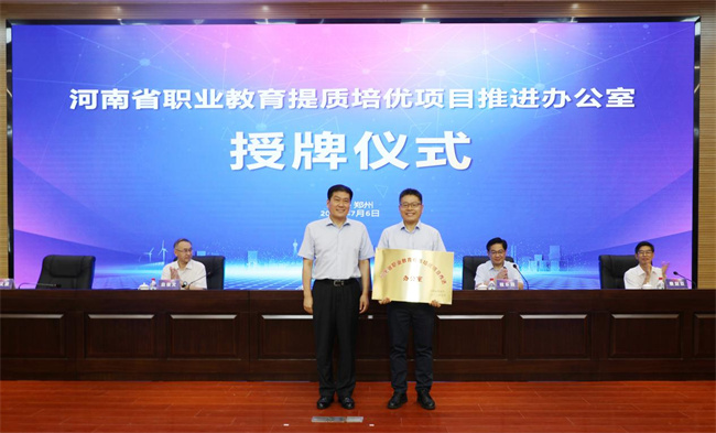大會舉行了河南能源動力與材料職教集團啟動儀式,與會領(lǐng)導(dǎo)共同為河南能源動力與材料職業(yè)教育集團進行揭牌。省教育廳二級巡視員董玉民代表省教育廳為“河南能源動力與材料職業(yè)教育集團”和“河南省職業(yè)教育提質(zhì)培優(yōu)項目推進辦公室”進行授牌。