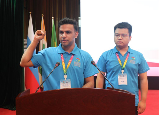 金磚國(guó)家工商理事會(huì)中方技能組主席,一帶一路暨金磚國(guó)家技能發(fā)展國(guó)際聯(lián)盟理事長(zhǎng),金磚國(guó)家技能發(fā)展與技術(shù)創(chuàng)新大賽組委會(huì)執(zhí)委會(huì)主席劉振英,河南省教育廳二級(jí)巡視員董玉民,學(xué)校黨委書記周保平,黨委副書記、校長(zhǎng)胡昊等領(lǐng)導(dǎo)出席開幕式,中國(guó)、巴基斯坦、津巴布韋、多哥、尼日利亞5個(gè)國(guó)家的51支參賽隊(duì)和競(jìng)賽支持單位,近200人參加開幕式。開幕式由胡昊主持。
