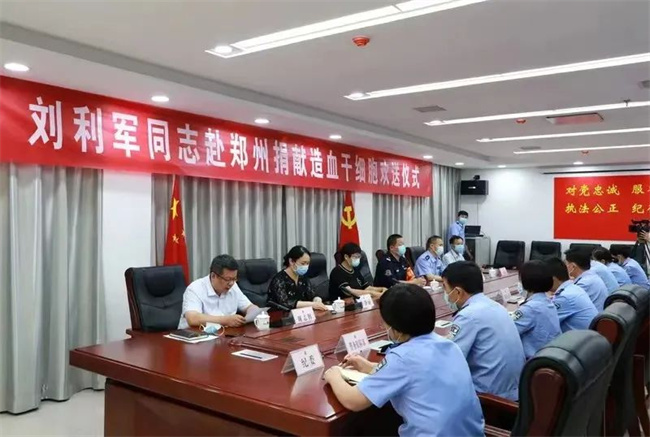在劉利軍赴鄭捐獻前,許昌市紅十字會、鄢陵縣政府、縣公安局一同為劉利軍舉辦了歡送會,隆重歡送劉利軍同志赴鄭州捐獻造血干細胞。