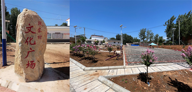 鄭州工程技術(shù)學(xué)院定點(diǎn)幫扶的段東村,一直以來都存在著村組織陣地辦公設(shè)施缺少,村民活動(dòng)沒有好去處的問題。為此,學(xué)校黨委高度重視,指示學(xué)校駐段東村工作隊(duì)一定要結(jié)合村內(nèi)實(shí)際,盡快解決問題。在學(xué)校組織部的指導(dǎo)協(xié)調(diào)下,駐村工作隊(duì)通過走訪調(diào)研,并與村“兩委”研究討論,上報(bào)學(xué)校黨委和大金店鎮(zhèn)黨委同意后將原村委東側(cè)的荒溝“里溝”填平,新建一座黨建文化廣場(chǎng)。該校又援助近15萬元對(duì)文化廣場(chǎng)進(jìn)行硬化、美化,并安裝太陽能路燈10盞,滿足村民休閑、健身等需求,進(jìn)一步完善農(nóng)村基礎(chǔ)設(shè)施,改善人居環(huán)境,讓群眾共享公共文化健康服務(wù)。