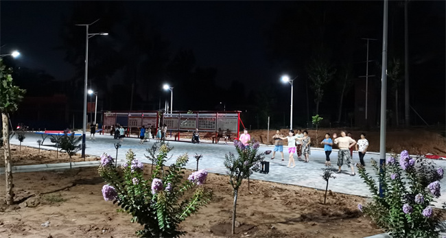段東村文化廣場(chǎng)建成后,駐村工作隊(duì)為做好黨建文化宣傳,在文化廣場(chǎng)上翻新設(shè)計(jì)制作8個(gè)宣傳展板,宣傳黨務(wù)政務(wù)、社會(huì)主義核心價(jià)值觀、移風(fēng)易俗及村規(guī)民約等內(nèi)容。為了方便村民鍛煉,駐村工作隊(duì)在廣場(chǎng)安置乒乓球臺(tái),安裝健身器,配套建設(shè)游園一個(gè)。新安裝的太陽能路燈照亮了廣場(chǎng),也照亮了老百姓的心,方便了村民夜晚跳舞、聊天、嬉戲,使段東村村民也有了精彩“夜生活”。