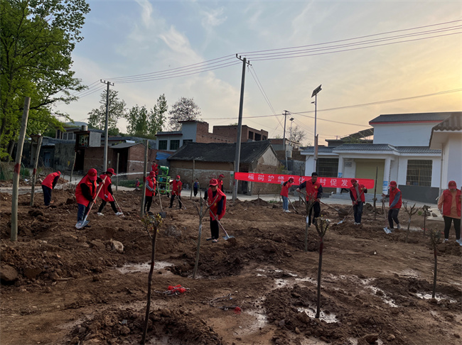 駐村工作隊(duì)帶領(lǐng)群眾在文化廣場(chǎng)旁植樹