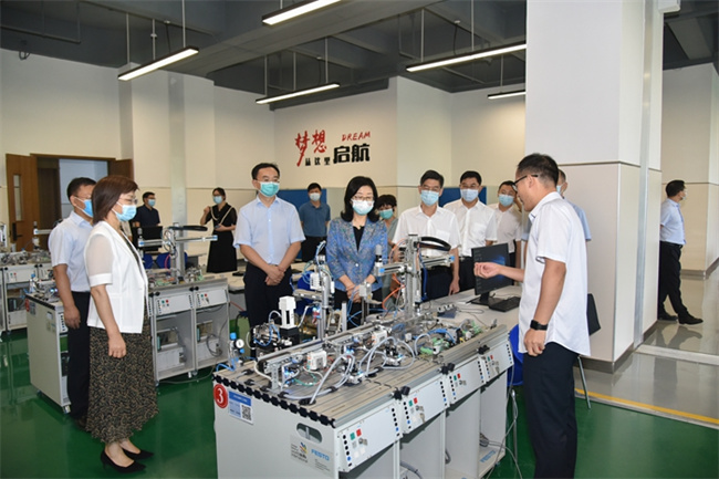 毛杰一行先后實地調(diào)研了學(xué)校的創(chuàng)客空間、大數(shù)據(jù)雙創(chuàng)基地、智能制造格力學(xué)習(xí)工廠、智能制造綜合實訓(xùn)室、文化旅游學(xué)院智能餐廳實訓(xùn)室、茶藝實訓(xùn)室、智慧健康學(xué)院實訓(xùn)室等教育教學(xué)場所,每到一處,都與教師和學(xué)生親切交談,詳細(xì)詢問,深入了解學(xué)校人才分類培養(yǎng)、教學(xué)改革、創(chuàng)新創(chuàng)業(yè)、實訓(xùn)條件、技能大賽等情況。