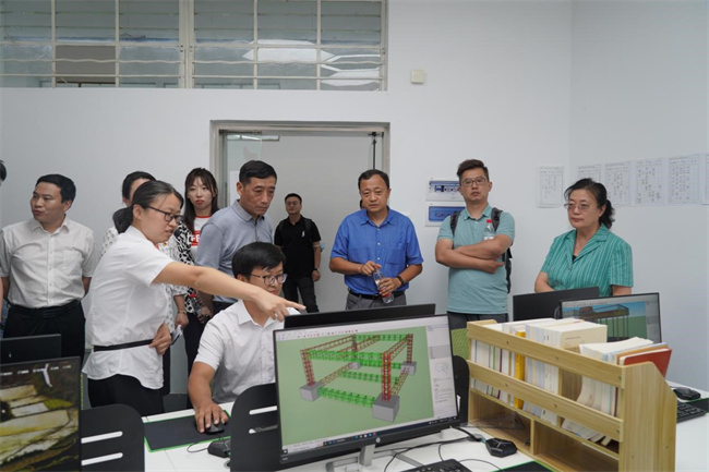 在光武路校區(qū),專家組一行實地考察了學(xué)校建筑工程虛擬仿真實訓(xùn)基地的建設(shè)與運行情況,詳細了解建筑工程虛擬仿真實訓(xùn)基地的硬件設(shè)施、軟件配置、教學(xué)團隊、實訓(xùn)項目、服務(wù)專業(yè)、開設(shè)課程、實訓(xùn)管理等,并與虛擬仿真實訓(xùn)團隊的教師進行了深入交流。