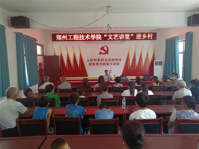 在接下來開展的“文藝講堂”活動中,學(xué)校音樂舞蹈學(xué)院院長馬宏霞帶著李金玲和曹永謙兩位教授和段東村的群眾一起進行文化交流。身為常派弟子的李金玲為大家表演了《祖國的大建設(shè)一日千里》《將姐姐和弟弟手兒拉緊》《花木蘭羞答答施禮拜上》,二胡名家曹永謙為大家演奏了《賽馬》《洪湖水浪打浪》《南泥灣》等緊扣時代發(fā)展主題的文藝節(jié)目,有溫度地傳遞了黨和政府的聲音和關(guān)懷,為村民們送上一場精彩的文化大餐。在活動開展過程中,兩位教授還講解了豫劇、二胡的歷史及相關(guān)知識,與村民進行了交流互動;顒蝇F(xiàn)場秩序井然,掌聲、歡笑聲此起彼伏。