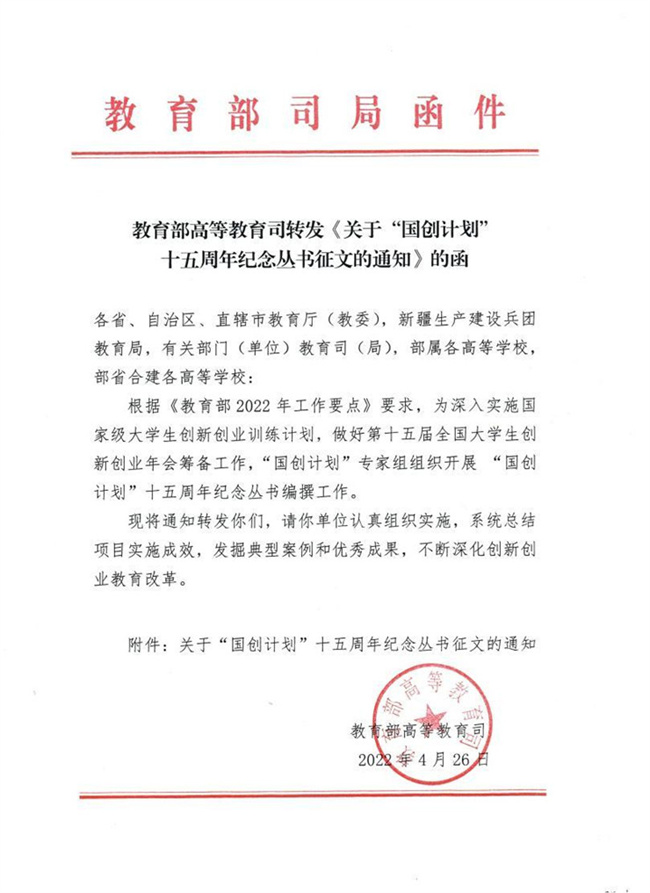 中新河南網(wǎng)8月2日電(陳勛) 近日,教育部高等教育司轉(zhuǎn)發(fā)《關于“國創(chuàng)計劃”十五周年紀念叢書征文的通知》的函,鄭州升達經(jīng)貿(mào)管理學院選送的、由會計學院王郝毅、高雪兒同學撰寫的《我和我的文創(chuàng)夢》成功入選《成長成才篇》;同時,根據(jù)教育部高教司的意見,參加第十五屆國創(chuàng)年會期間開展的“我和國創(chuàng)共成長”——成長成才故事線上聯(lián)講活動。