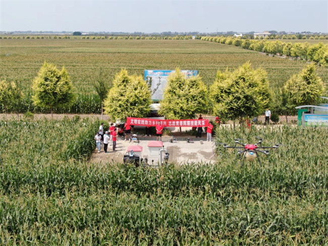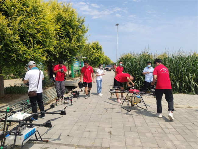 8月19日上午,航空學(xué)院志愿服務(wù)隊(duì)走進(jìn)商水縣高標(biāo)準(zhǔn)農(nóng)田示范區(qū),操作植保無(wú)人機(jī)對(duì)玉米田地進(jìn)行病蟲(chóng)害防治作業(yè)。兩架載荷20公斤的大疆T20植保無(wú)人機(jī)在商水縣萬(wàn)畝農(nóng)田上空噴灑農(nóng)藥,為農(nóng)作物病蟲(chóng)防治保駕護(hù)航。相比傳統(tǒng)的人工打藥方式,無(wú)人機(jī)噴灑農(nóng)藥具有速度快、效率高、成本低、可規(guī)模化作業(yè)等優(yōu)勢(shì)特點(diǎn),F(xiàn)場(chǎng)的工作人員連連稱(chēng)贊:“感謝河南機(jī)電職業(yè)學(xué)院幫我們打農(nóng)藥,用無(wú)人機(jī)打藥效率就是快,不壓玉米,噴灑均勻,高科技真是個(gè)好東西”。志愿服務(wù)隊(duì)通過(guò)科技手段助力田間管理,促進(jìn)了農(nóng)業(yè)生產(chǎn)提質(zhì)增效,為助力鄉(xiāng)村振興建設(shè)貢獻(xiàn)智慧和力量。