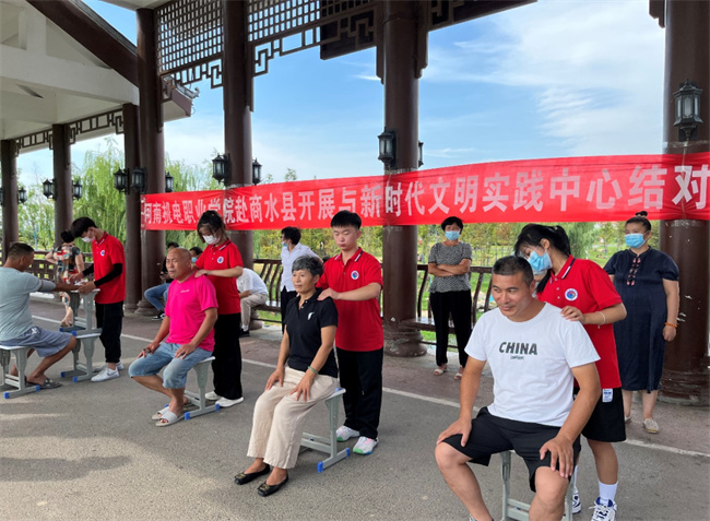 志愿服務(wù)隊(duì)在商水縣陳勝公園進(jìn)行義務(wù)理療推拿