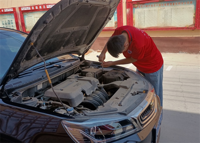 志愿服務(wù)隊(duì)在商水縣董營(yíng)村進(jìn)行維修保養(yǎng)汽車(chē)服務(wù)