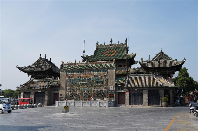 賒店古鎮(zhèn)依水而建,依商而興。大家來(lái)到步入古鎮(zhèn),仿佛走進(jìn)了歷史深處。始建于清乾隆年間的山陜會(huì)館,集精巧的建筑結(jié)構(gòu)與精湛的雕刻藝術(shù)于一體,實(shí)踐團(tuán)成員首先來(lái)到這里,在雕梁畫(huà)棟的多彩琉璃照壁前駐足停留,不禁被精湛的古代工藝所折服,壁面整體構(gòu)圖精巧,寓意豐富,體現(xiàn)了中國(guó)古代“匠人”的偉大智慧。