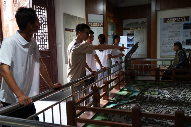 圖為實(shí)踐團(tuán)成員在古鎮(zhèn)沙盤(pán)模型前觀摩,古會(huì)館、古城墻、古城樓相映成輝,猶如一本厚重的歷史古書(shū),一頁(yè)一頁(yè)記錄著中華文明史的發(fā)展,展現(xiàn)著時(shí)代的變遷。王宛玲 攝