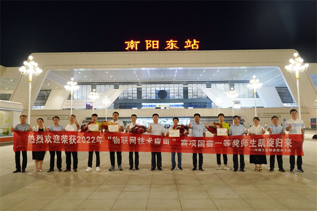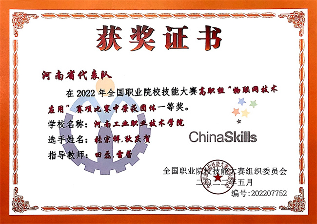 中新河南網(wǎng)8月30日電(劉天恒) 捷報(bào)頻傳,喜訊連連。8月25日,2022年全國(guó)職業(yè)院校技能大賽高職組“物聯(lián)網(wǎng)技術(shù)應(yīng)用”賽項(xiàng)在山東信息職業(yè)技術(shù)學(xué)院落下帷幕,由河南工業(yè)職業(yè)技術(shù)學(xué)院電子信息工程學(xué)院院長(zhǎng)連晗領(lǐng)隊(duì),田磊、雷蕾兩位老師指導(dǎo),張宗祥、狄慶賀兩名同學(xué)組成的參賽隊(duì)參加國(guó)賽,從全國(guó)29個(gè)省、自治區(qū)、直轄市的58支參賽隊(duì)伍中脫穎而出,斬獲國(guó)賽一等獎(jiǎng)。