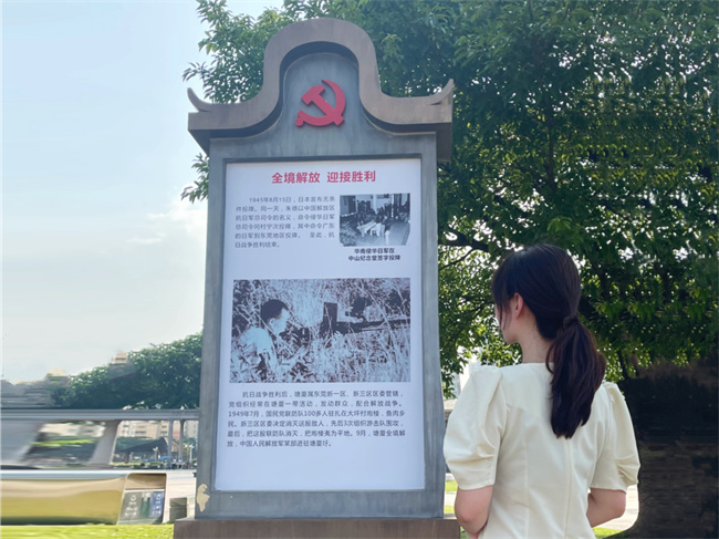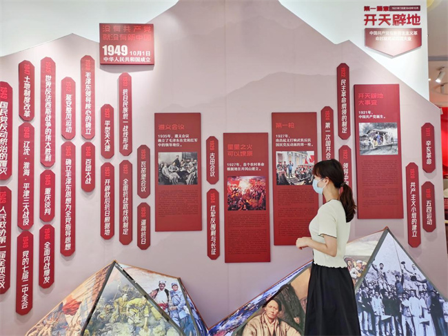 圖為實(shí)踐團(tuán)成員通過展廳豐富詳實(shí)的文字、圖片、視頻及實(shí)物介紹,重溫中國(guó)共產(chǎn)黨近百年來(lái)波瀾壯闊的光輝歲月。