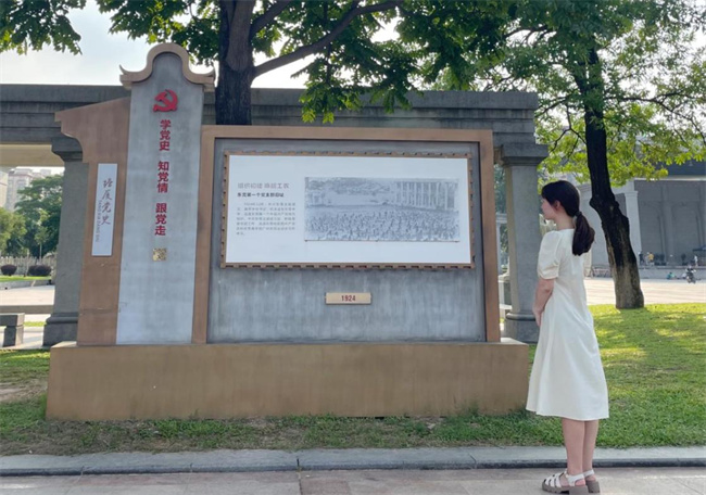 圖為實(shí)踐團(tuán)成員瞻仰了林村廣場(chǎng)的黨建雕塑,了解了中國(guó)共產(chǎn)黨在廣東東莞地區(qū)從無(wú)到有、由弱到強(qiáng)、不斷發(fā)展壯大的歷程。