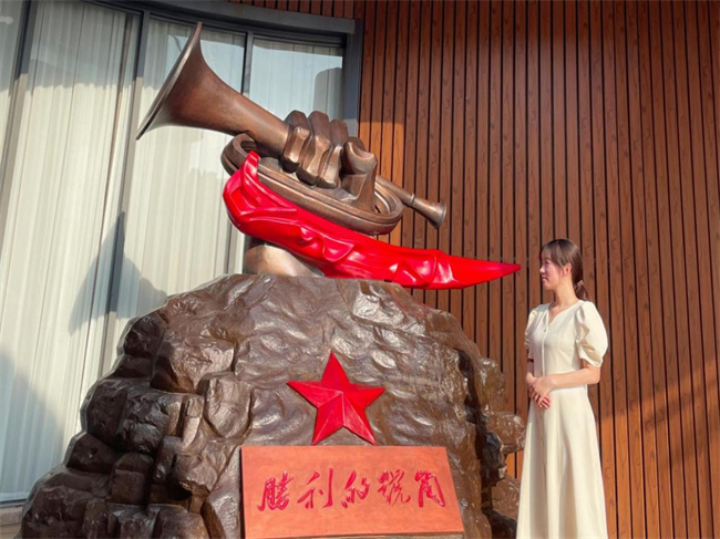 圖為實(shí)踐團(tuán)成員在“勝利的號(hào)角”模型前觀摩。王心雨 供圖