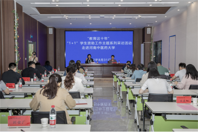 據(jù)悉,為迎接黨的二十大,宣傳黨的十八大以來教育改革發(fā)展取得的巨大成就,教育部從2022年8月30日起,圍繞“十八大以來學(xué)生資助工作成效”主題,在河南開展“教育這十年”“1+1”學(xué)生資助工作主題系列發(fā)布采訪活動。河南中醫(yī)藥大學(xué)被教育部和河南省教育廳選定為河南省學(xué)生資助工作典型,接受中央和省級媒體記者進行實地采訪。此次全省共遴選了兩所高校、三個縣市,該校是第一站接受采訪展示的單位。