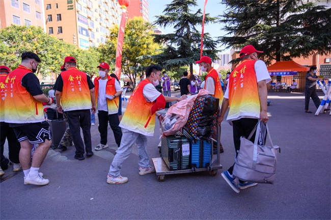 學(xué)校大門口,這時大批學(xué)生已陸續(xù)到來,各學(xué)院的接待點也都忙碌起來,隨處可以看到黨、團志愿服務(wù)隊,在忙著幫新生拉行李。這里最辛苦的要數(shù)保衛(wèi)科和健康中心的工作人員,他們早上六點多就到崗了。因為處于疫情防控期間,健康中心專門在大門口設(shè)置了疫情檢測點和隔離點。保衛(wèi)科的工作人員不僅要把好新生的安全進校關(guān),還要負責(zé)對來送學(xué)生的車輛安排,指揮現(xiàn)場秩序,忙的滿頭是汗。學(xué)校工作人員和志愿者為新生提供的熱情、周到服務(wù),受到了新生和家長的交口稱贊,令他們感受到升達園的親切和熱情。