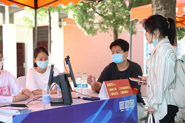 為了確保2022級迎接新生工作順利有序進行,學(xué)校在鄭州火車站西廣場設(shè)立了新生接待處,組織了多輛大巴往返車站迎接新生。在校西大門南側(cè)200米設(shè)立家長休息區(qū)。學(xué)生進校后即可刷臉注冊,帶著行李,乘坐免費擺渡車前往宿舍。學(xué)生在線上完成交費后,通過刷臉注冊,就可以進入已經(jīng)在線上選好的宿舍,操作非常便捷。學(xué)校數(shù)字化迎新系統(tǒng)運行幾年來,各項優(yōu)化措施大大減少了學(xué)生手續(xù)辦理過程,實現(xiàn)了“讓數(shù)據(jù)多跑路,讓學(xué)生少跑腿”。