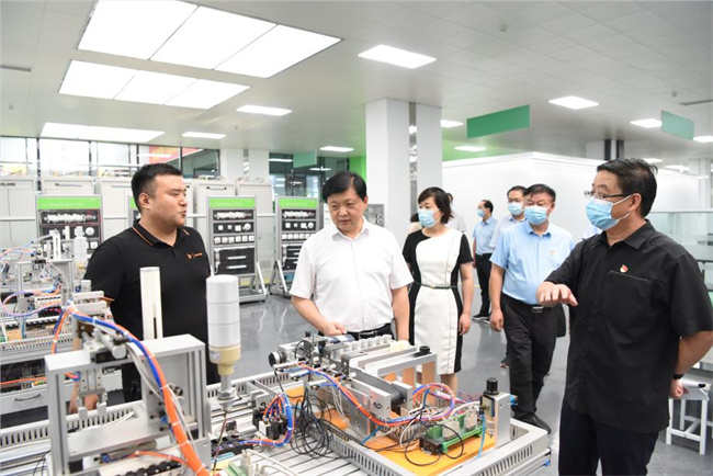 走進校園,黃旭東察看了學校規(guī)劃布局與建設,前往實訓中心與師生們親切交流,了解師資力量配備、專業(yè)設置、學生學習及就業(yè)前景等情況。