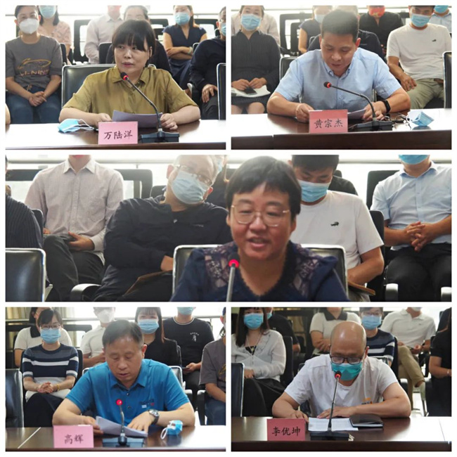 優(yōu)秀教師代表萬陸洋、優(yōu)秀教育工作者代表黃宗杰、師德先進個人代表高輝、從教工作滿30年教師代表姚虹、高層次人才代表李優(yōu)坤博士分別圍繞“迎接黨的二十大 培根鑄魂育新人 ”主題,結合自身實際,暢談工作體會,分享教育教學經(jīng)驗,與大家共謀學校發(fā)展愿景。