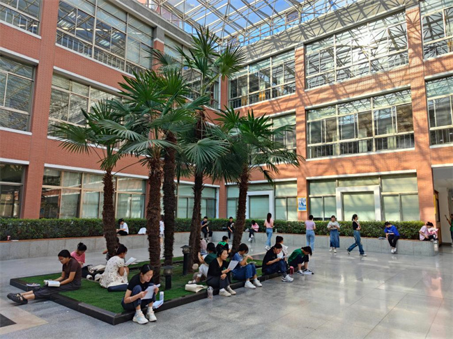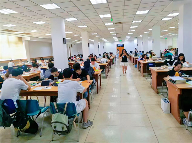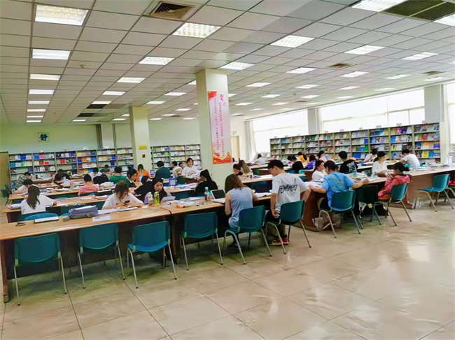 朗朗讀書聲,孜孜勤學(xué)影。清晨六、七點(diǎn)鐘,在圖書館大門外草坪上、道路旁、圖書館中廳,不少同學(xué)在專心致志地讀書或背誦;圖書館自修室更是座無虛席,人氣爆棚,這些如饑似渴的學(xué)生中,多為備戰(zhàn)研究生、公務(wù)員、四六級考試而來,也不乏閱讀愛好者。八點(diǎn)剛過,掃過場所碼的讀者排隊(duì)刷卡(臉)魚貫而入,期刊室、閱覽書區(qū)或電子閱覽室到處都是認(rèn)真閱讀或埋頭苦學(xué)的身影,學(xué)生們盡情享受著學(xué)習(xí)的快樂,圖書館里彌漫著濃厚的學(xué)習(xí)氛圍。一名大四學(xué)生說:她很喜歡待在圖書館里,因?yàn)閳D書館的學(xué)習(xí)氛圍和環(huán)境秩序良好,在這里每一個(gè)同學(xué)都在認(rèn)真地學(xué)習(xí),自己也會沉浸在這種競爭氛圍中更加努力,感覺自己的每一個(gè)細(xì)胞都異常興奮,充滿拼搏的力量。