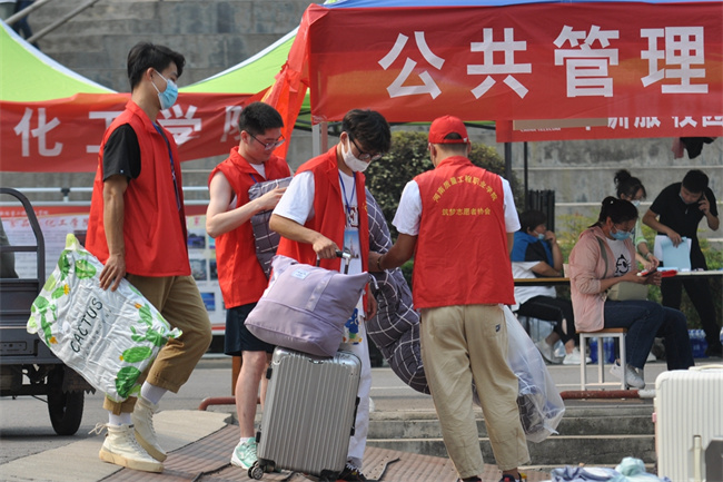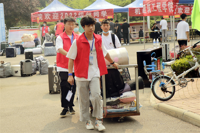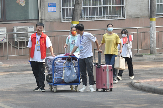 為便于新生報(bào)到,學(xué)院采用“一條龍”全過(guò)程服務(wù),接站、報(bào)到、入住全程都有工作人員和師生志愿者的指引協(xié)助,各環(huán)節(jié)有效銜接。在火車(chē)站、高鐵站、汽車(chē)站,院團(tuán)委老師、學(xué)生志愿者早早到位,迎接新生。在學(xué)院大門(mén)口,學(xué)院嚴(yán)格出入管理,守好新生報(bào)到入校疫情防控線(xiàn),保衛(wèi)處、后勤處工作人員仔細(xì)查驗(yàn)進(jìn)校新生的核酸檢測(cè)報(bào)告、健康碼等,并做好身份核驗(yàn)、體溫檢測(cè)、行李消殺;同時(shí)安排專(zhuān)人進(jìn)行疏導(dǎo),避免交通擁堵,保障交通秩序。進(jìn)入校園,校內(nèi)志愿者為新同學(xué)耐心指路、講解注意事項(xiàng)、辦理報(bào)到手續(xù),利用電動(dòng)車(chē)輛、手推車(chē)搬運(yùn)行李,努力做到全程服務(wù);現(xiàn)場(chǎng)工作人員認(rèn)真組織協(xié)調(diào),循環(huán)運(yùn)轉(zhuǎn),保證了迎新工作的順利開(kāi)展。陽(yáng)光下,被汗水浸透的紅色馬甲是校園里最靚麗的風(fēng)景線(xiàn)。學(xué)院還在校園里設(shè)置咨詢(xún)臺(tái),提供綠色通道、學(xué)籍咨詢(xún)、醫(yī)療救護(hù)等服務(wù),迎新工作井然有序、暖心高效。