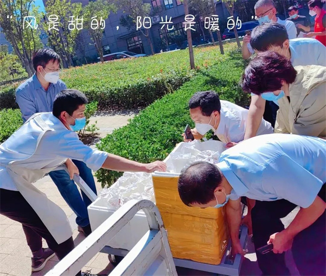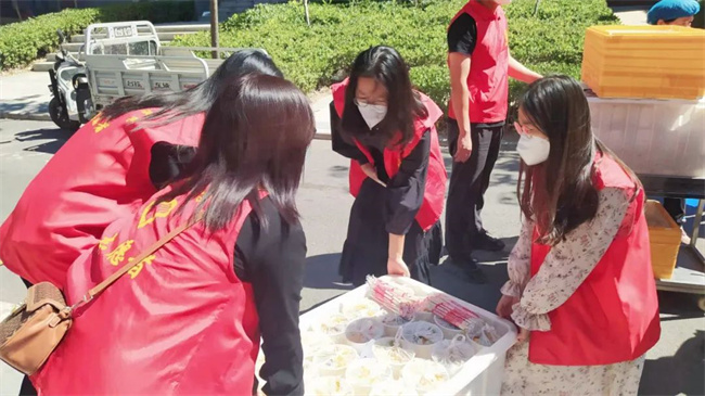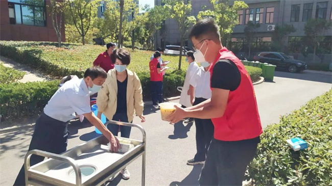 每日三餐之時,總會看到一群大白在忙碌著給同學(xué)們發(fā)飯,而化身大白的正是我們敬愛的老師,將飯送至宿舍大廳,通知學(xué)生分樓層,分批次有序下樓取餐,每次為同學(xué)發(fā)完飯,總是汗如雨下,身體太累了,一群人席地而坐,簡單吃點(diǎn),沒有抱怨,更多的是相互鼓勵。他們是教書育人、關(guān)愛學(xué)生的師者,此刻他們是最可愛的大白,盡全力想讓學(xué)生早一點(diǎn)吃到飯。