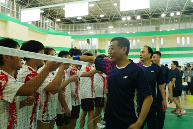 為積極營造和諧融洽的師生關(guān)系和濃厚的校園文化氛圍,10月5日下午4點30分,河南工業(yè)職業(yè)技術(shù)學(xué)院體育教學(xué)部組織校教職工羽毛球隊和校學(xué)生羽毛球隊,舉辦“慶國慶 抗疫情 喜迎二十大”師生羽毛球聯(lián)誼賽。本次聯(lián)誼賽先后進行了男子雙打、男女混合雙打共7場比賽。賽場上選手們揮汗如雨,享受著比賽的樂趣,迸發(fā)著對運動的熱情,伴隨著一記記精彩的扣殺、劈殺或巧妙的高遠、網(wǎng)前、吊球,贏得現(xiàn)場觀眾陣陣掌聲和歡呼聲,場內(nèi)外觀眾情緒高漲、熱情洋溢。