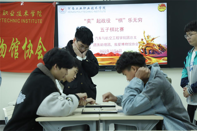 為慶祝中華人民共和國成立73周年,迎接二十大的到來,堅定不移跟黨走,共同邁進新征程,河南工業(yè)職業(yè)技術(shù)學(xué)院汽車與航空工程學(xué)院舉辦棋藝大賽。本次棋藝大賽遵循“以棋會友”的宗旨,回應(yīng)同學(xué)們切磋棋藝的殷切期盼,同時為棋類愛好者提供一個相互交流的平臺,弘揚時代旋律的健康校園文化。