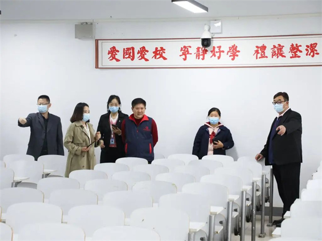 巡視校園設施配備、水電安全、環(huán)境衛(wèi)生以及安全隱患,現場解決問題的校領導們。
