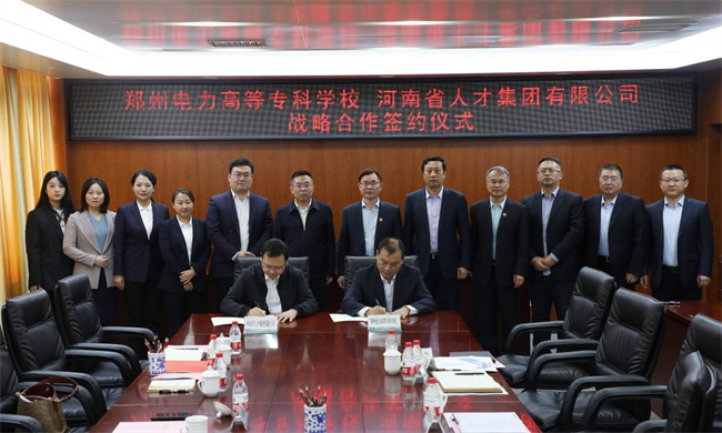 中新河南網(wǎng)10月13日電(李安杰) 10月12日,河南省人才集團(tuán)有限公司黨委書(shū)記、總經(jīng)理張東紅,黨委委員、副總經(jīng)理王利軍一行到鄭州電力高等專(zhuān)科學(xué)校調(diào)研,并簽訂戰(zhàn)略合作協(xié)議。校長(zhǎng)楊建華、河南省電力公司高級(jí)專(zhuān)家(一級(jí))鄧啟民、三級(jí)職員楊小琨、河南省電力公司高級(jí)專(zhuān)家(二級(jí))張勇,學(xué)校人力資源部、發(fā)展質(zhì)量部、招生就業(yè)處負(fù)責(zé)同志出席簽約儀式。