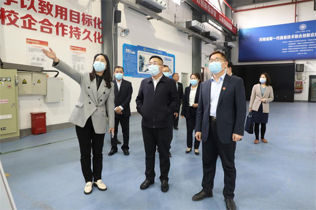 簽約儀式后,在楊建華等校領(lǐng)導(dǎo)的陪同下,張東紅一行參觀調(diào)研學(xué)校智能制造實(shí)訓(xùn)基地、新能源實(shí)訓(xùn)基地和220kV智能變電站實(shí)訓(xùn)基地。