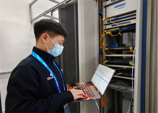 北京冬奧會期間,董天賜在八達嶺國際會展中心機房工作場景