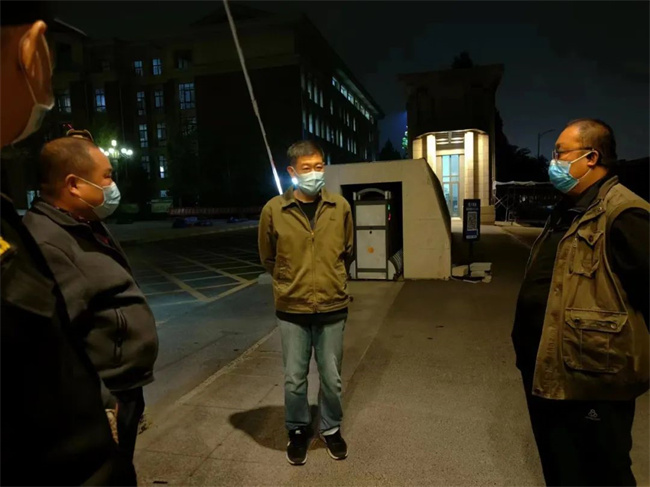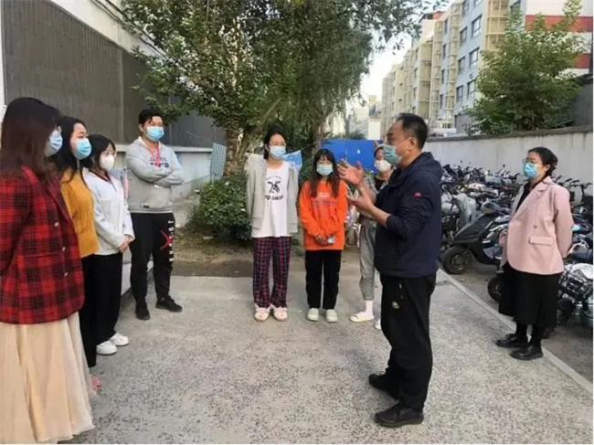 每天下午和晚上,音樂舞蹈學(xué)院學(xué)工隊伍在國基生活園區(qū)巡邏,在園區(qū)內(nèi)督促學(xué)生戴口罩,不聚集,不聚餐等。
