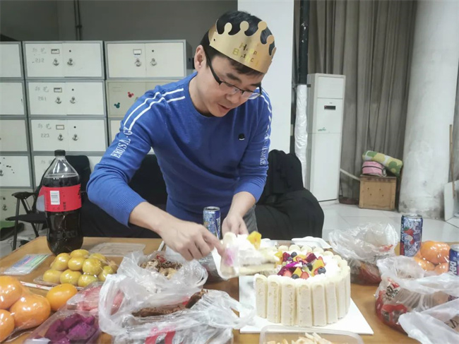 怕封在家里,學(xué)工隊伍第一時間入住學(xué)校,恰逢音樂舞蹈學(xué)院和進(jìn)旭老師生日,大家在園區(qū)一起過了簡單的生日。