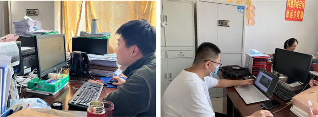 他們堅守抗疫一線,同時不耽誤本職工作,抗疫之余,在辦公室里辦公、與學(xué)生線上開班會、線上教學(xué)。