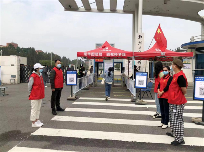 校團(tuán)委組織以入團(tuán)積極分子、團(tuán)員、入黨積極分子為骨干的青年志愿者隊伍,在四個校區(qū)開展校園文明行為督導(dǎo)。每天從7點半到晚上9點半在校園內(nèi)督促學(xué)生正確佩戴口罩、出入場所掃碼。(鄭州工程技術(shù)學(xué)院供稿)