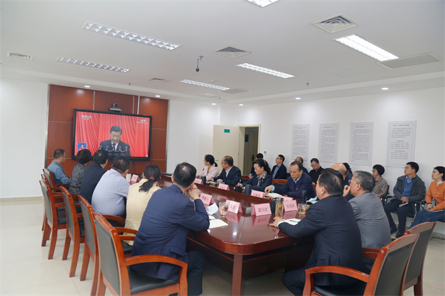 10月16日上午10時(shí),學(xué)校黨委理論學(xué)習(xí)中心組舉行學(xué)習(xí)(擴(kuò)大)會,全體校領(lǐng)導(dǎo)和有關(guān)職能部門負(fù)責(zé)人在圖書館第二報(bào)告廳集中收看開幕會,認(rèn)真聆聽習(xí)近平總書記代表第十九屆中央委員會向大會所作的報(bào)告。校長許二平表示,深入學(xué)習(xí)宣傳貫徹黨的二十大精神是學(xué)校當(dāng)前和今后一個(gè)時(shí)期的重要政治任務(wù),全校各基層黨組織要采取多種形式深學(xué)細(xì)悟黨的二十大精神,推動各項(xiàng)工作再上新臺階。我們要高舉偉大旗幟,汲取貫徹黨的二十大精神的磅礴力量;要響應(yīng)偉大號召,走好高等教育高質(zhì)量發(fā)展之路;要牢記使命擔(dān)當(dāng),把握中醫(yī)藥事業(yè)傳承創(chuàng)新發(fā)展的重要契機(jī),不負(fù)重托,守正創(chuàng)新,積極融入新的偉大奮斗,在全面推進(jìn)中華民族偉大復(fù)興的新征程上書寫更加出彩的中醫(yī)藥篇章!